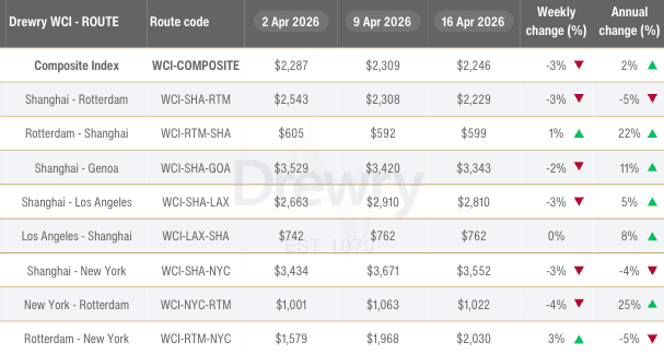 The Drewry World Container Index slipped 3% to $2,246 per FEU last week, ending a six-week rally triggered by Middle East conflicts and rising oil prices. Spot rates from Shanghai to Los Angeles and New York also decreased 3%. This brief cooldown is likely a mirage. Carriers have already announced 9 blank sailings on the Transpacific route next week to artificially tighten capacity. More importantly, brace yourself for May 1: Multiple carriers are rolling out Peak Season Surcharges of around $2,000 per container. Combined with the US-led naval blockade in the Strait of Hormuz turning ships back and spiking oil prices, shippers should prepare for reduced schedule reliability, longer lead times, and renewed upward pressure on rates. Source: Drewry