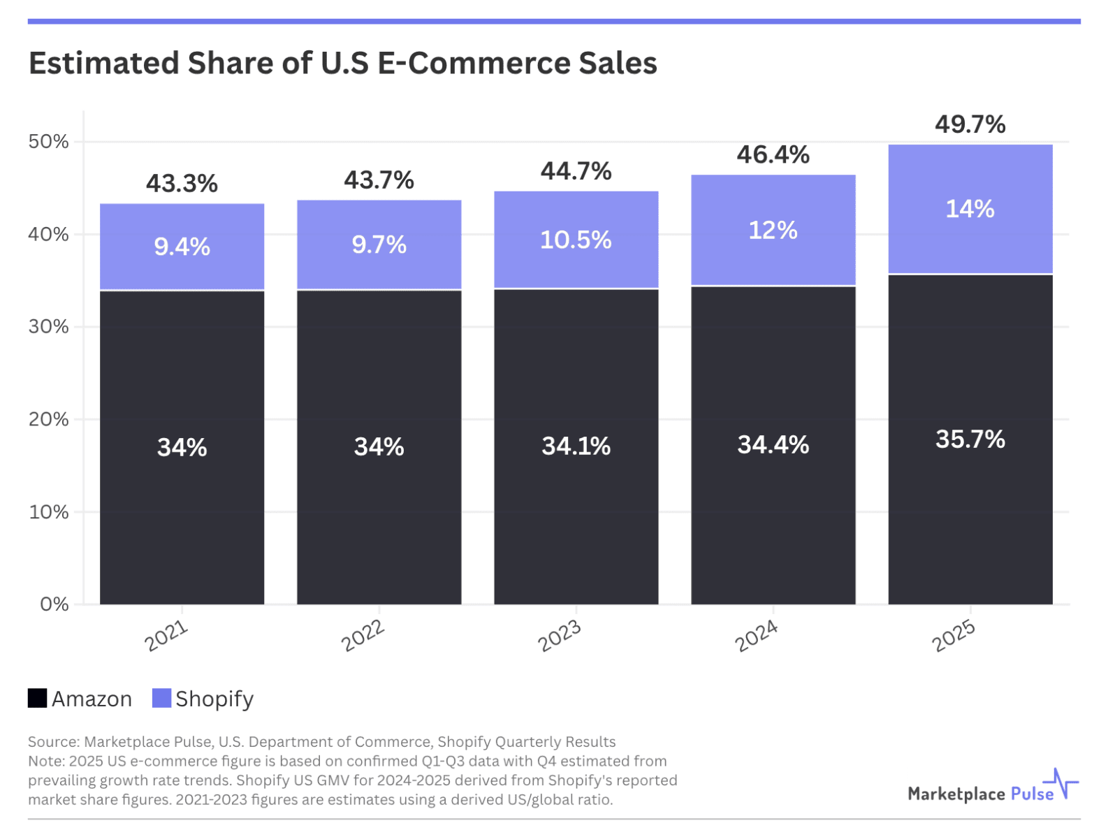Amazon & Shopify Now Control Half of U.S. E-Commerce